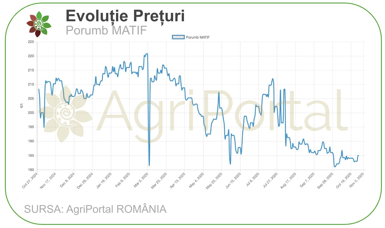 Pe piețele europene, tranzacțiile cu porumb au rămas în general stabile, susținute de cerere moderată, dar de o ofertă spot limitată. Activitatea fizică a fost concentrată în porturile principale, unde operatorii continuă să monitorizeze evoluțiile prețurilor la cereale și semințe oleaginoase din regiunea Mării Negre. Primele pentru livrările viitoare au fost ajustate marginal, reflectând condițiile de recoltare și transport, în timp ce speculațiile legate de contractele futures din SUA și Asia au influențat ușor sentimentul pieței europene. În general, prețurile au rămas stabile, însă volatilitatea pe termen scurt poate fi așteptată în funcție de dinamica exporturilor și de condițiile meteorologice din regiunile de producție.