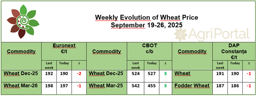 Repere săptămânale de pe piața globală de grâu - 26 septembrie 2025