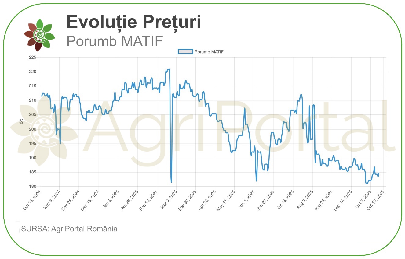 Porumbul american se tranzacționează în prezent fără date privind recoltarea sau exporturile, iar condițiile meteo din Brazilia par din ce în ce mai favorabile. China și-a redus estimarea pentru importurile din 2025/2026 la 6 milioane de tone, mult sub cele 10 milioane prognozate de USDA, iar orice acord comercial între SUA și China pare tot mai compromis.