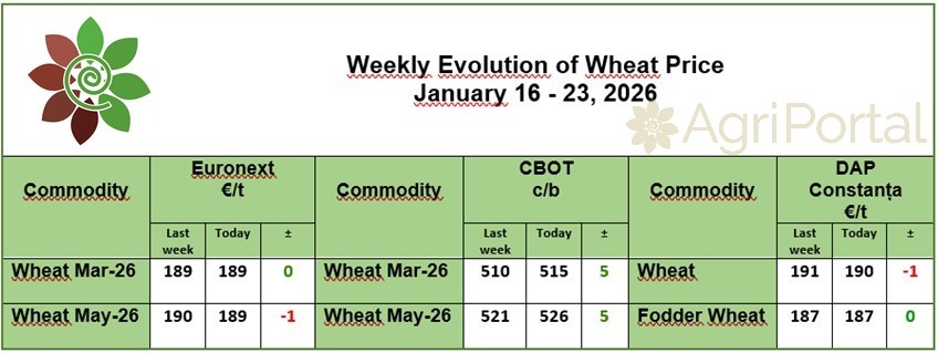 Grâul de la Bursa Euronext încearcă o stabilizare, chiar sub pragul de 190 EUR/t, susținut de o relaxare a monedei euro în timp ce comentariile președintelui Trump cu privire la eforturile sale de a achiziționa Groenlanda au temperat nervozitatea investitorilor, menționând nu va folosi forța pentru a-și atinge obiectivul. Totuși, întâlnirea de la Davos a adus îngrijorări cu privire la prăbușirea spațiului economic transatlantic, ce ar fi una dintre cele mai mari amenințări economice cu care se confruntă Europa. Într-o lume care trece de la o ordine bazată pe reguli la una bazată mai mult pe putere, companiile europene depind de o Europă puternică pentru a rămâne competitive la nivel internațional.